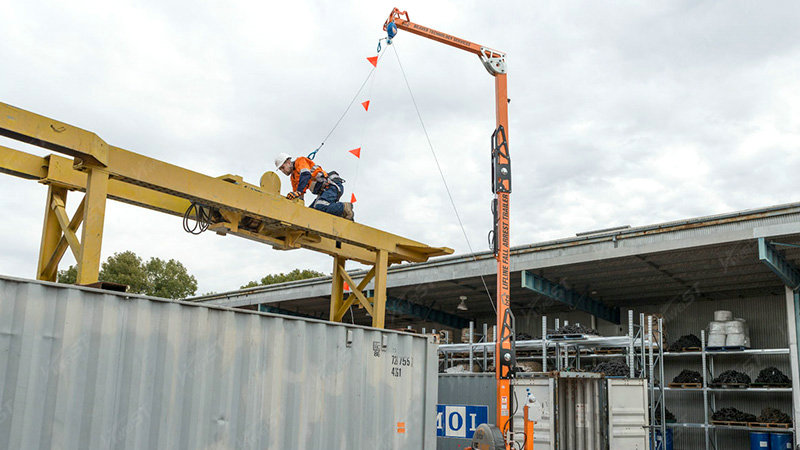 Wheeled foldable high-altitude anti fall protection device, foldable heavy-duty off-road structure, suitable for long-distance transportation and movement, and can also be used for outdoor operations. This device provides effective protection for high-altitude workers and prevents falls. The unique folding heavy-duty off-road structure allows for stable transportation and mobility. The design that facilitates unfolding and folding allows users to quickly build and remove devices.