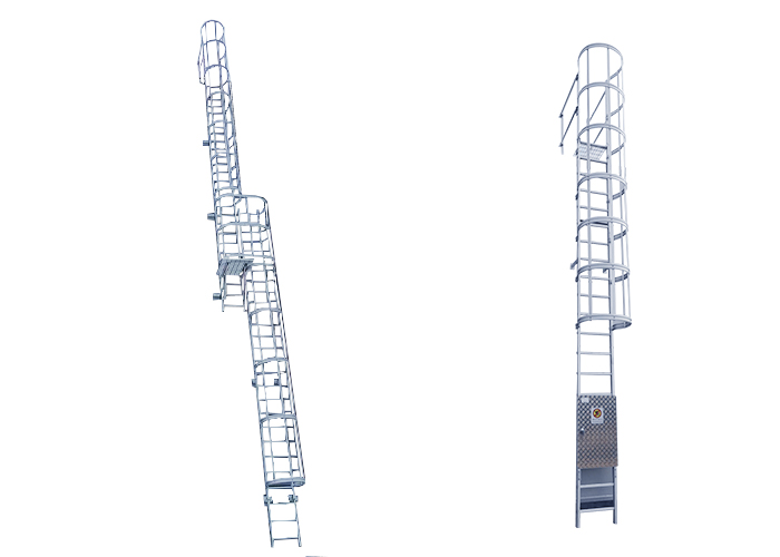 护笼直梯,又称为直爬梯或笼梯,为较高建筑物、机械设备等提供安全固定的通道。根据建筑物和设计要求,可以将固定式直梯设计为单截面通道梯或多截面通道梯。